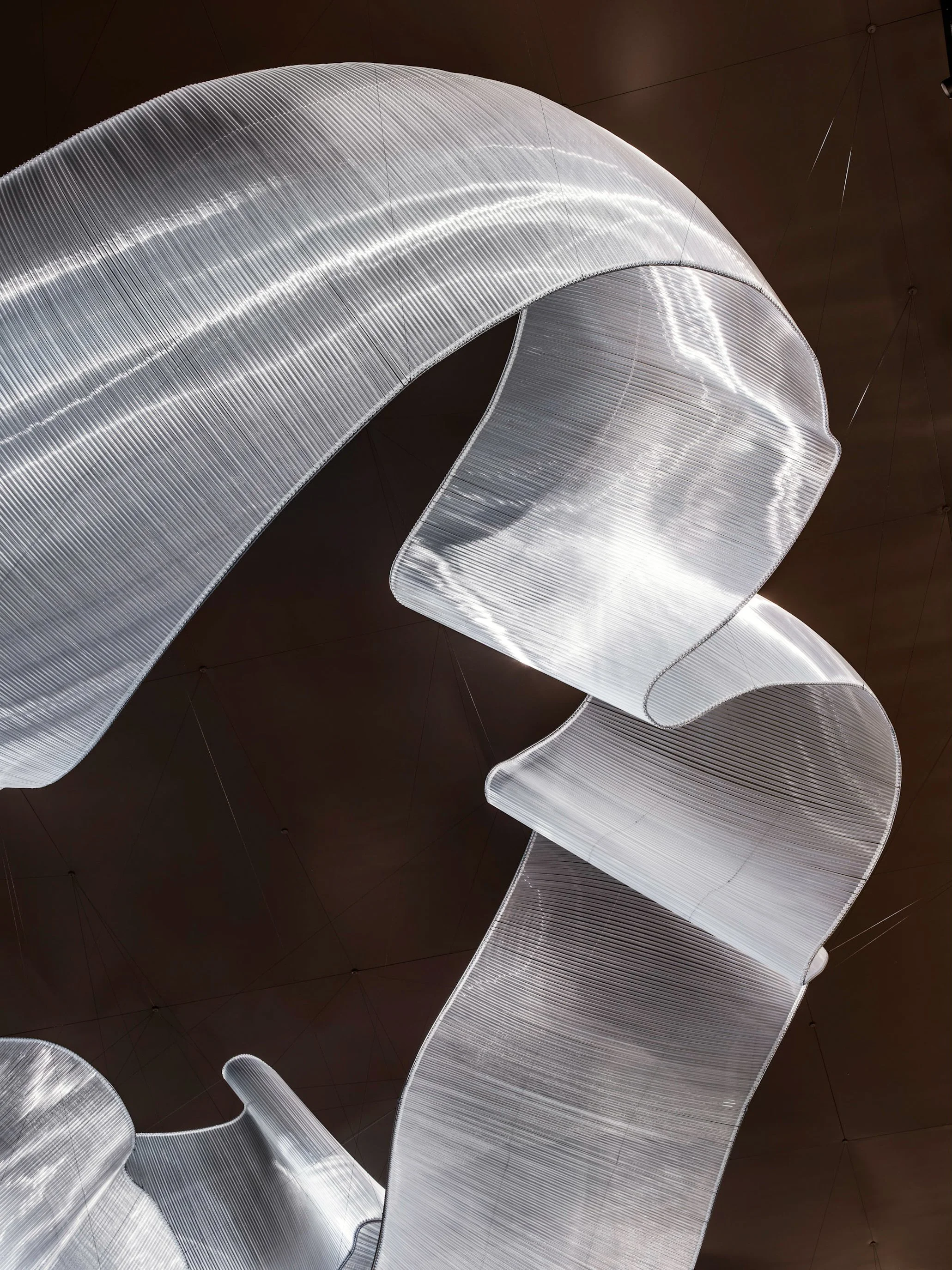 Writer Andrew Page explores the technical evolution behind Weinstein's architectural glass textiles, from early breakthrough innovations to the world record-setting Mangrove installation.